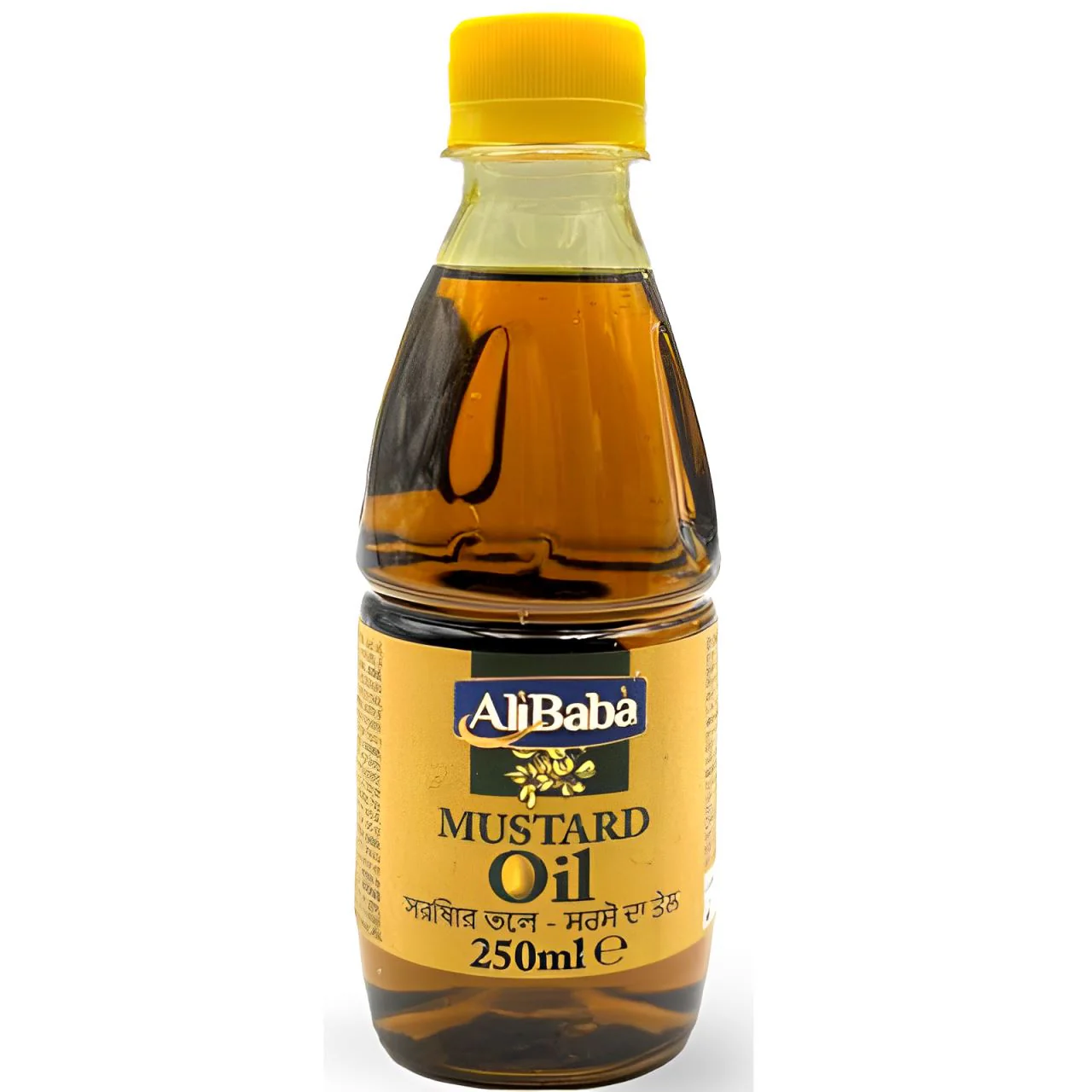 Olej musztardowy Alibaba 250ml to olej musztardowy, który najczęściej jest nierafinowany. Olej musztardowy w tej wersji jest bardziej zaawansowany smak i zapach, charakterystyczny dla musztardy, jest kompatybilny z kuchnią indyjskiej i azjatyckiej.
