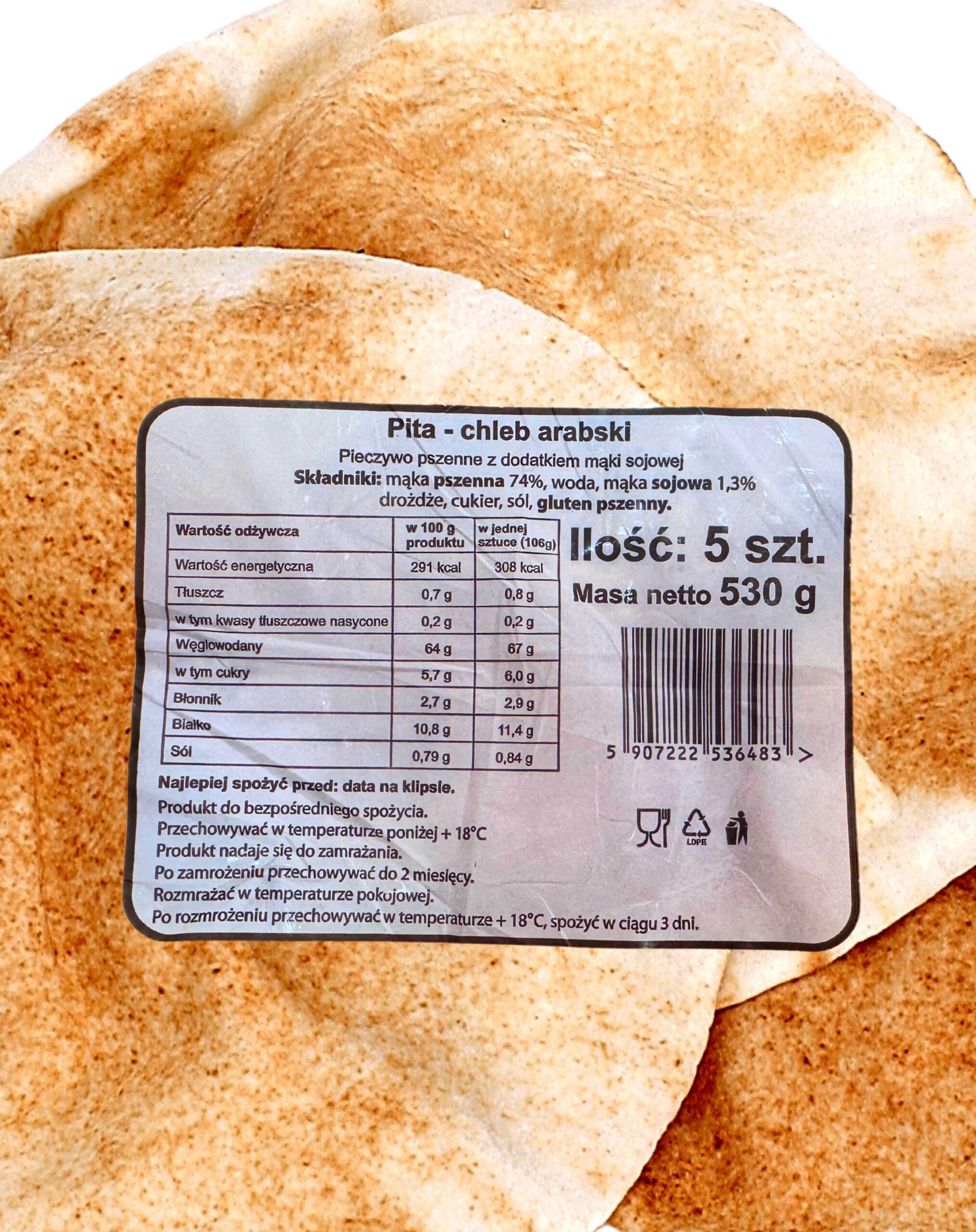 Arabic pita bread 30 cm (5 pieces) from Alibaba is a traditional cake inspired by Middle Eastern cuisine. Made from wheat flour, water and yeast, it is characterized by a naturally formed pocket during baking, ideal for stuffing with various fillings. Pita bread from Alibaba is valued for its quality and freshness, making it a popular choice among lovers of Arabic cuisine in Poland.