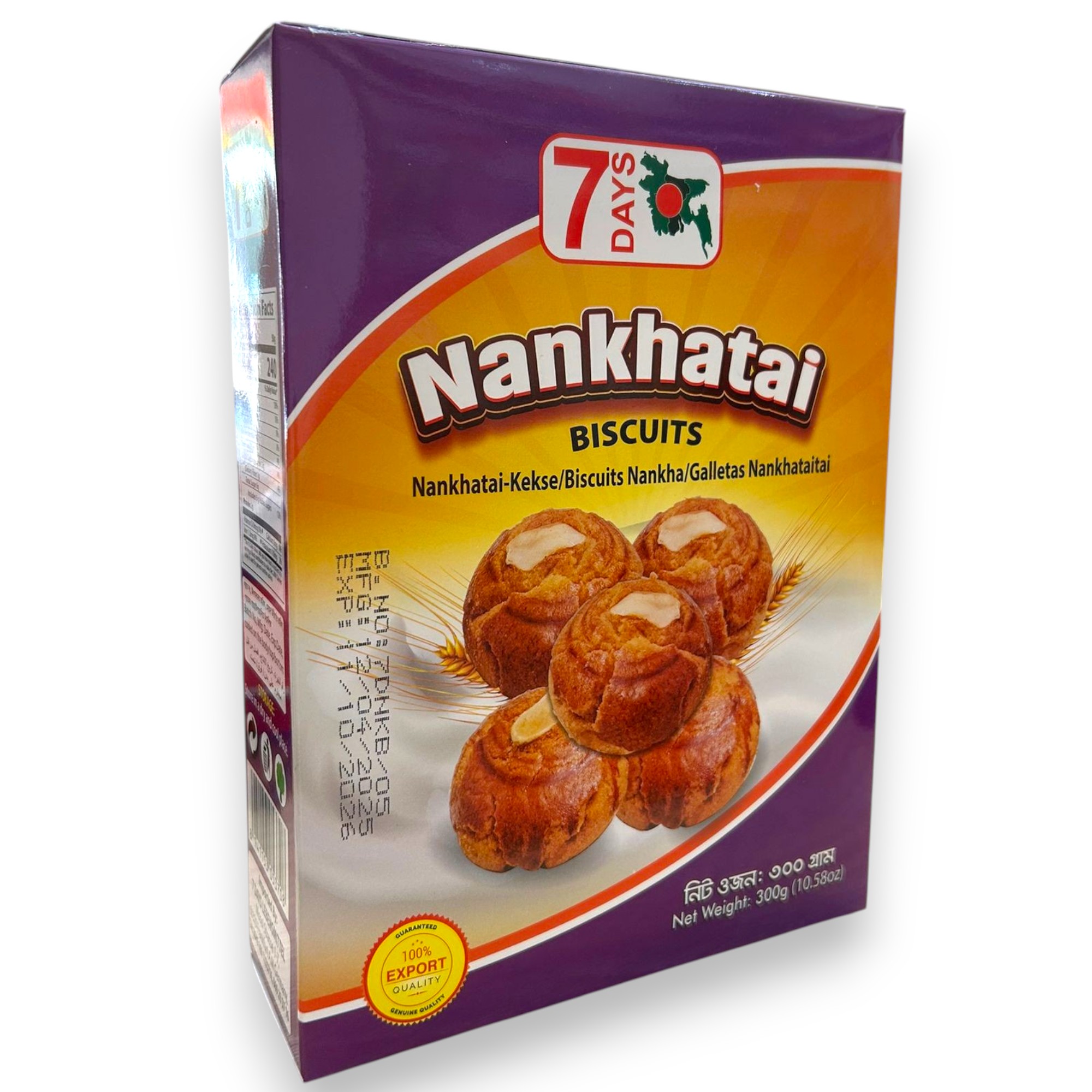Nankhatai are traditional Indian cookies with a buttery flavor and a crispy interior, made with wheat flour, butter (or ghee), and aromatic spices such as cardamom and nutmeg. The 7Days version comes in a convenient 350g paper package.