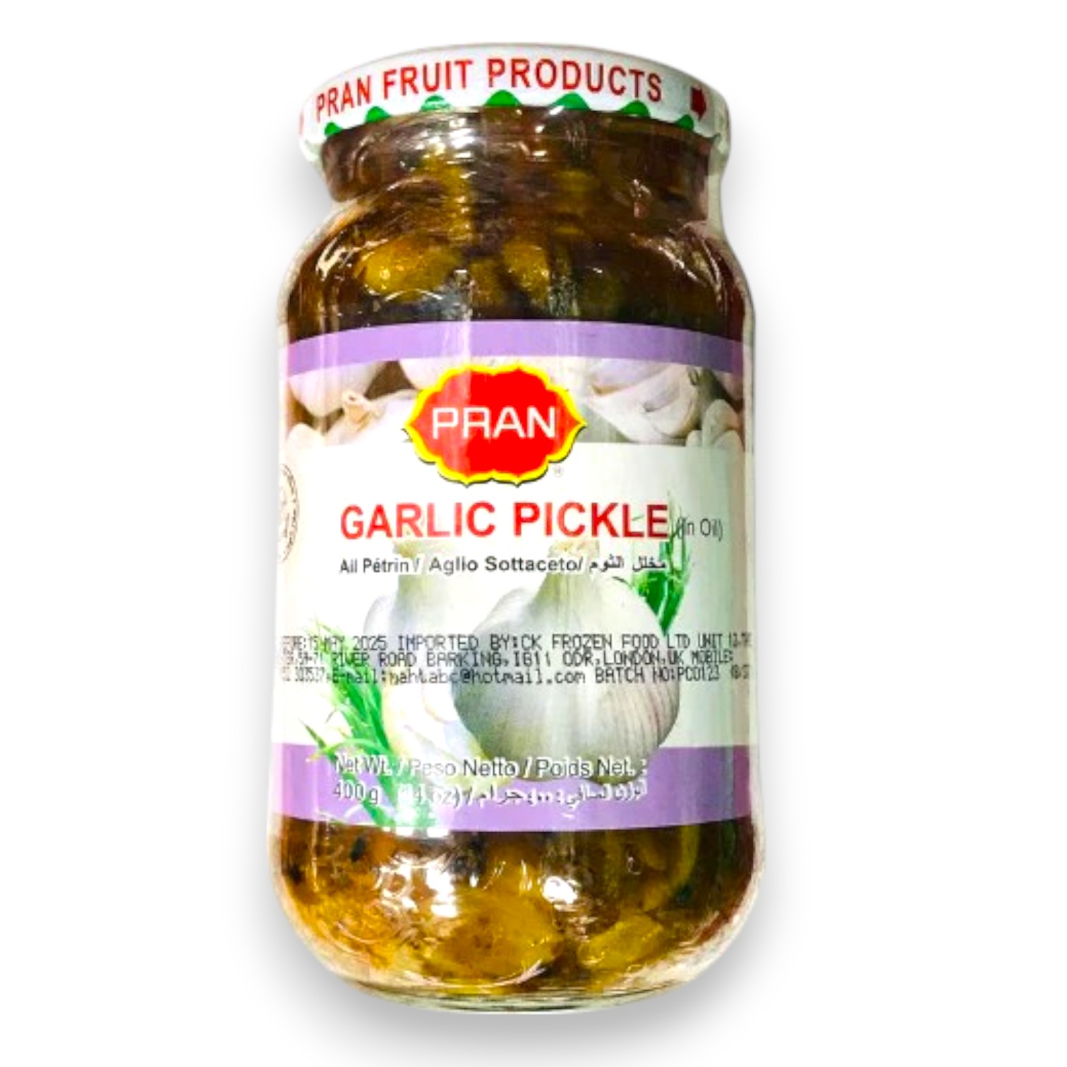 Experience the bold and robust taste of Pran Garlic Pickle, a traditional South Asian condiment crafted with whole garlic cloves, aromatic spices, and mustard oil. This spicy and tangy pickle adds a flavorful kick to any meal, making it a favorite for garlic lovers.