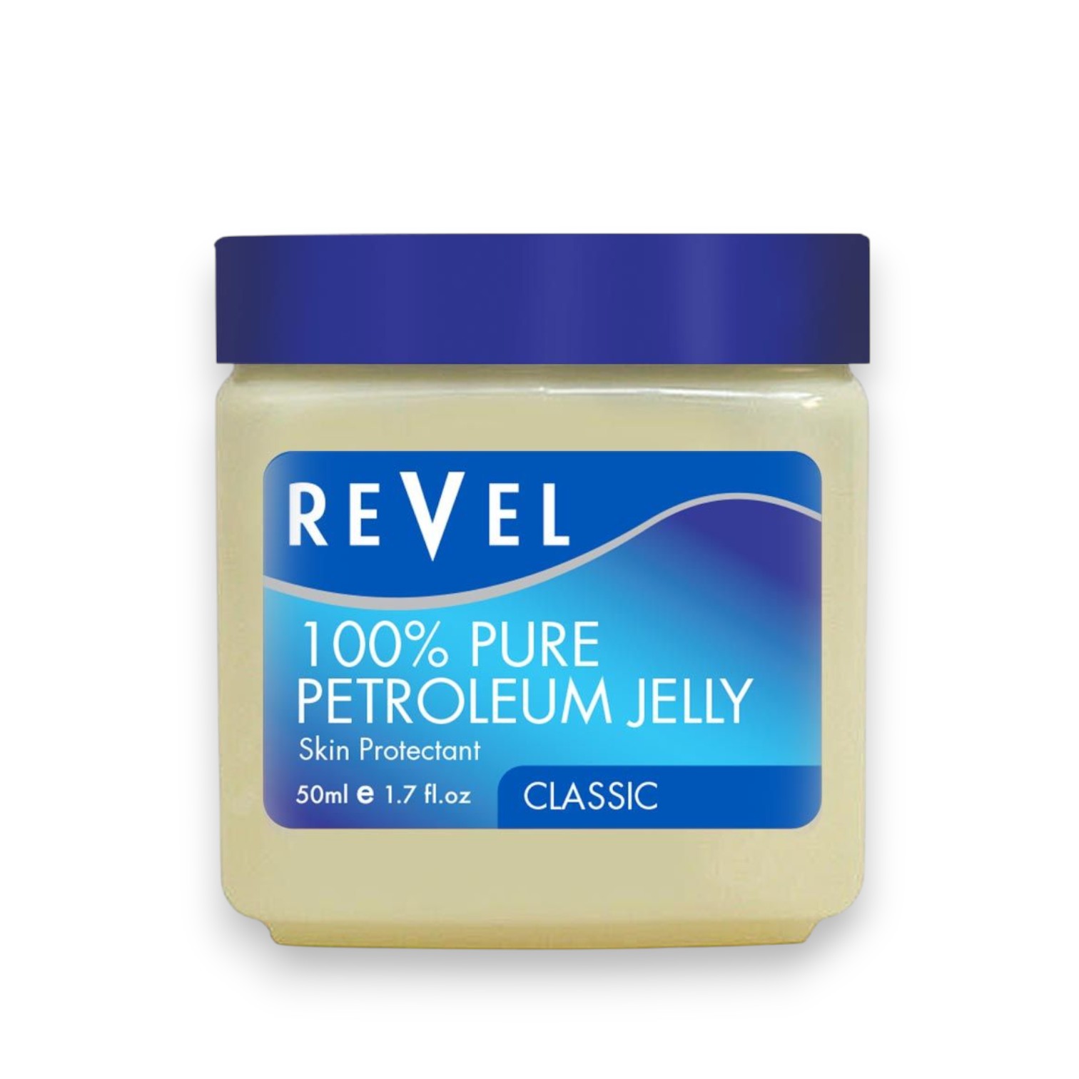 Revel Petroleum Jelly Classic is a multipurpose skincare product made from pure petroleum jelly. It forms a protective barrier on the skin to help lock in moisture and keep skin soft and smooth.