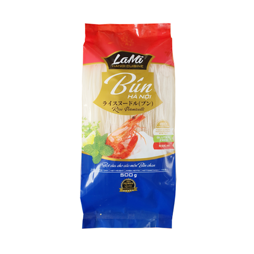 Lami Bun-M Rice Noodles are high-quality Vietnamese noodles perfect for preparing traditional Asian dishes. With a medium thickness, they are versatile and ideal for soups, stir-fries, and salads.